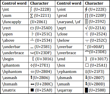 【2月19日突然发现 如何做到像使用 LaTeX 那样优雅地使用 Word? - mewing 的回答这里有更详细的有关公式的解说,并且给出了 http://unicode.org/notes/tn28/UTN28-PlainTextMath-v3.pdf这份微软提供个Unicode的详细文档,大家可以详细看这个文档的第30页,看看很多和\matrix地位相同的环境控制符号