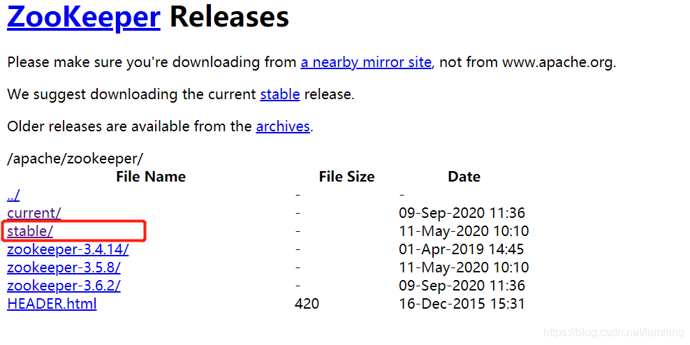 镜像站下载:http://mirrors.hust.edu.cn/apache/zookeeper/