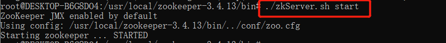 输入命令 ./zkServer.sh start (我之前安装的是zookeeper-3.4.13版本,所以图里的版本和文章的版本不一致,不影响)
