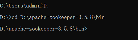 用cmd进入我们zookeeper的bin目录。