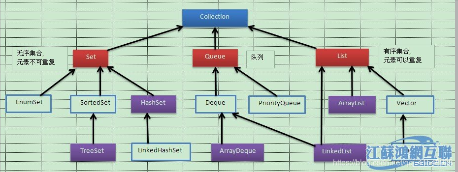 Collection:单列集合类的根接口,用于存储一系列符合某种规则的元素,它有两个重要的子接口,分别是java.util.List和java.util.Set。
