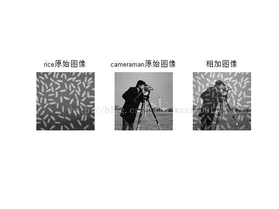 subplot(1,3,3);imshow(K,[]);title('相加图像');%注意使用imshow函数时,要加上[],以使得像素值压缩至0—255