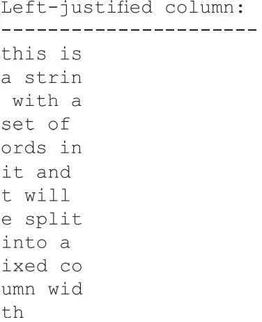 清单6 的FixedColumnWidth1.py说明了如何打印固定宽度的文本。