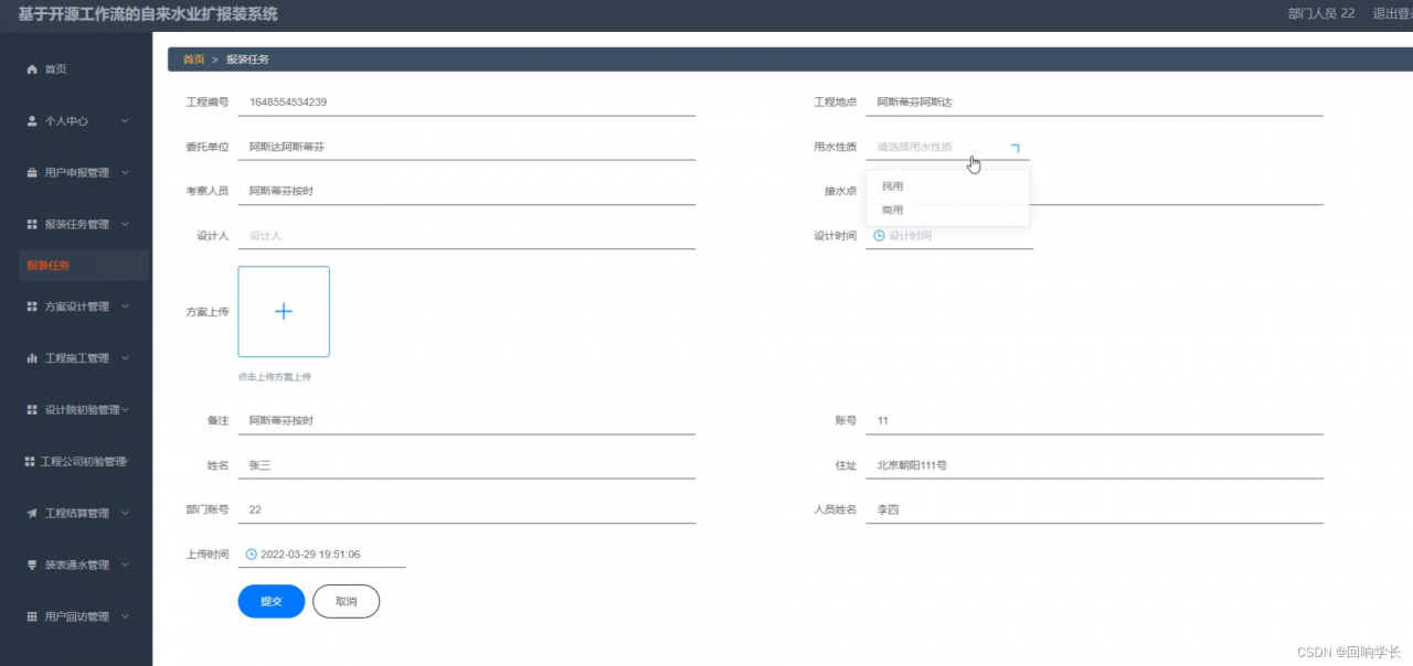 Springboot毕设项目基于开源工作流的自来水业扩报装系统2j2yi(java+VUE+Mybatis+Maven+Mysql)