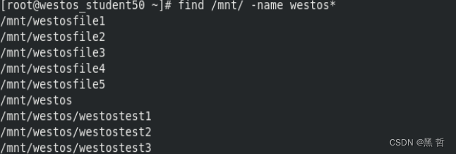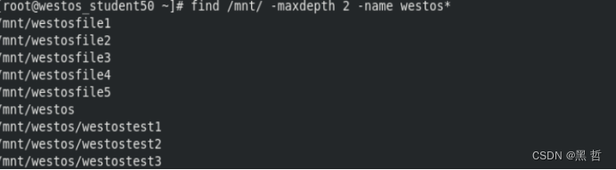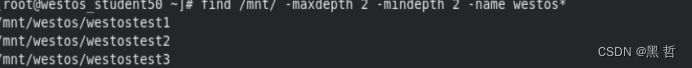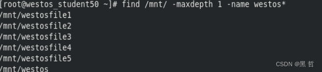 [root@westos_student50 ~]# find /mnt/ -maxdepth 2 -mindepth 2 -name westos*
