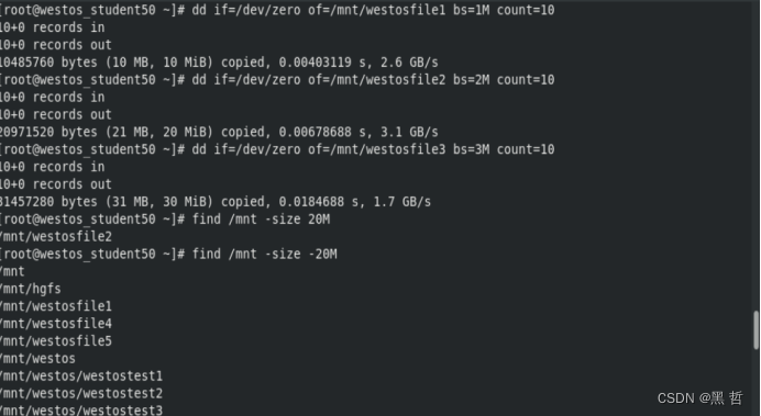 [root@westos_student50 ~]# dd if=/dev/zero of=/mnt/westosfile1 bs=1M count=10