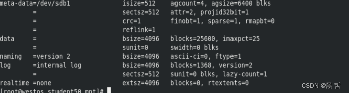 [root@westos_student50 mnt]# mkfs.xfs -K /dev/sdb1 -f 强制格式化
