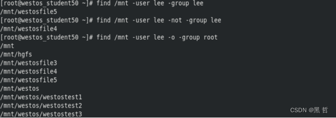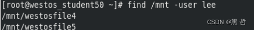 [root@westos_student50 ~]# find /mnt -user lee -o -group root查找用户是lee或者组是root