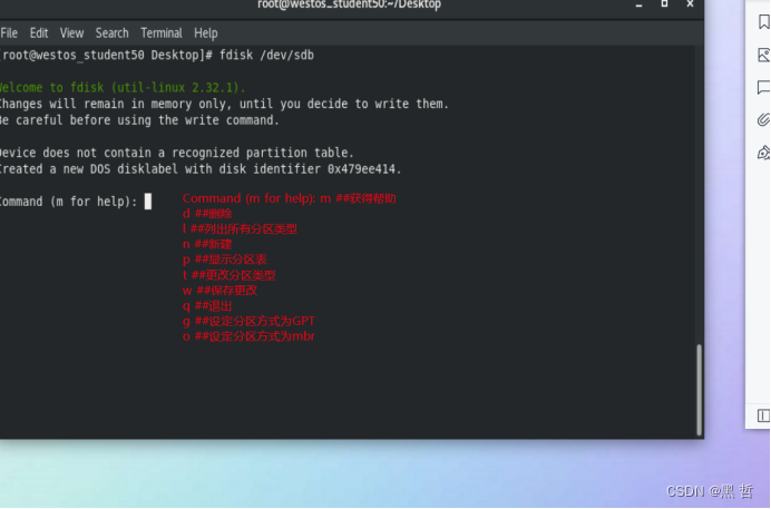 [root@westos_student50 Desktop]# fdisk /dev/sdb