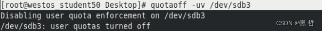 [root@westos_student50 Desktop]# quotaoff -uv /dev/sdb3 关闭配额