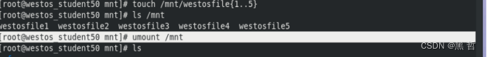[root@westos_student50 ~]# touch /mnt/westosfile1 建立文件