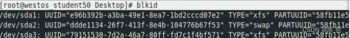 [root@westos_student50 Desktop]# blkid 查看设备id