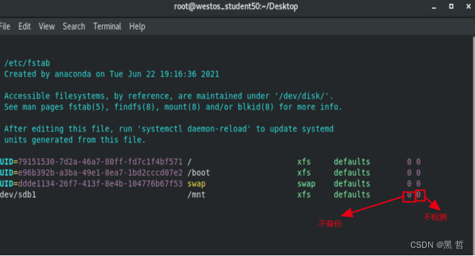 [root@westos_student50 Desktop]# vim /etc/fstab 永久挂载