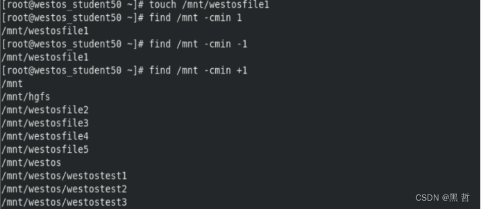 [root@westos_student50 ~]# find /mnt -cmin +1 超过一分钟的文件