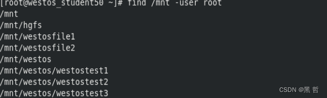 [root@westos_student50 ~]# find /mnt -user root 找用户为root的