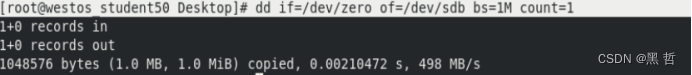[root@westos_student50 Desktop]# dd if=/dev/zero of=/dev/sdb bs=1M count=1 删除设备