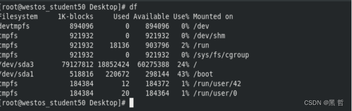 [root@westos_student50 Desktop]# df 查看设备是否被挂载