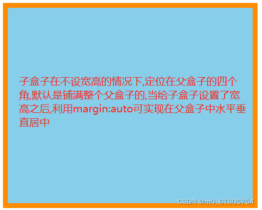 子盒子不设置宽高,则铺满整个父盒子(定位定在了四个角):
