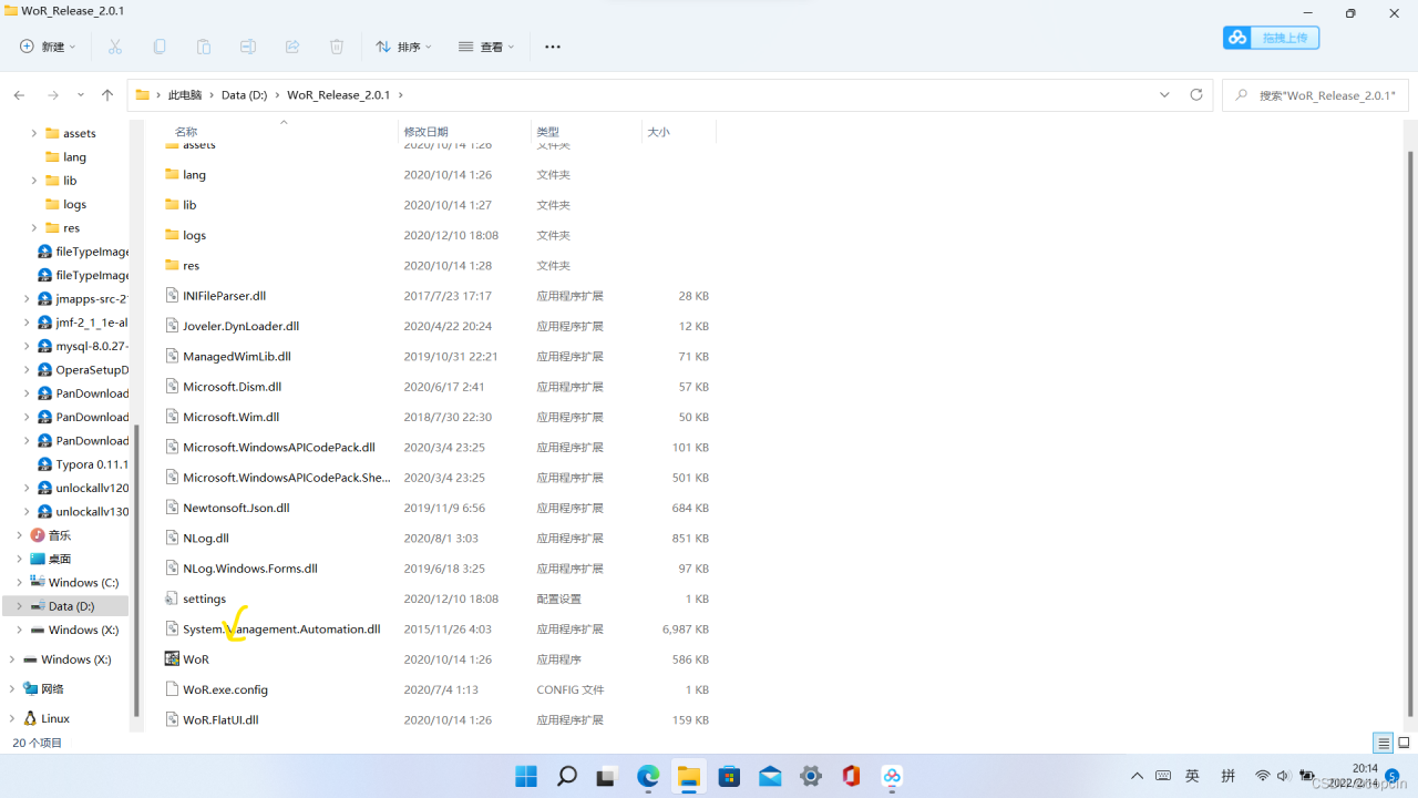 解压后打开其中的WoR.exe,即黄箭头指出的那个~;