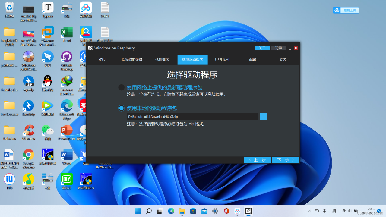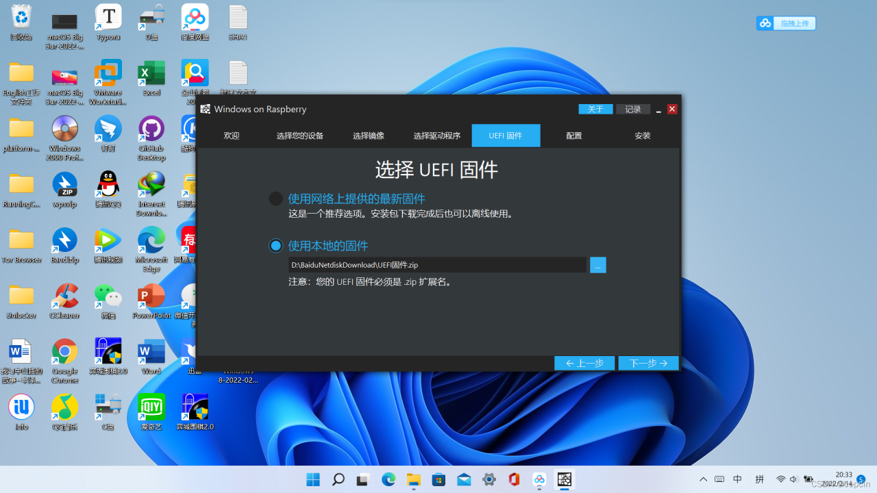 UEFI网盘链接: https://pan.baidu.com/s/1vJanAns6kYFZkyFbpXfX4w?pwd=3pmq。和选择驱动差不多,点击蓝色三个点,选择刚刚下载的UEFI.zip。下一步;