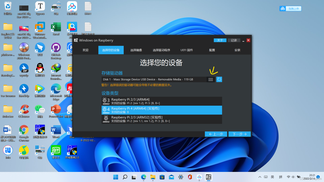 (编者硬件:树莓派4b内存8G,10寸显示器,128G的Class 10的TF卡,一个读卡器,一台win11本子,一根20m网线(之前被用来顶楼晒被子))