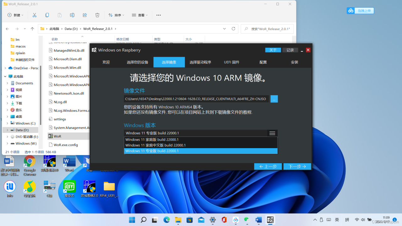 点击蓝色的三个点,选择刚刚下载的镜像,下面的Windows版本按照自己情况选,我选Windows专业版,下一步;