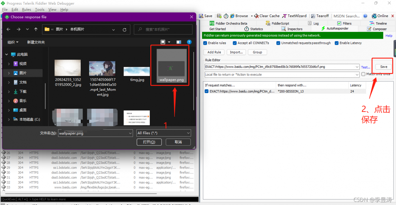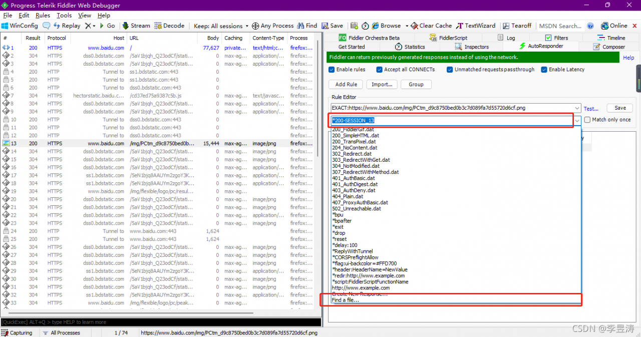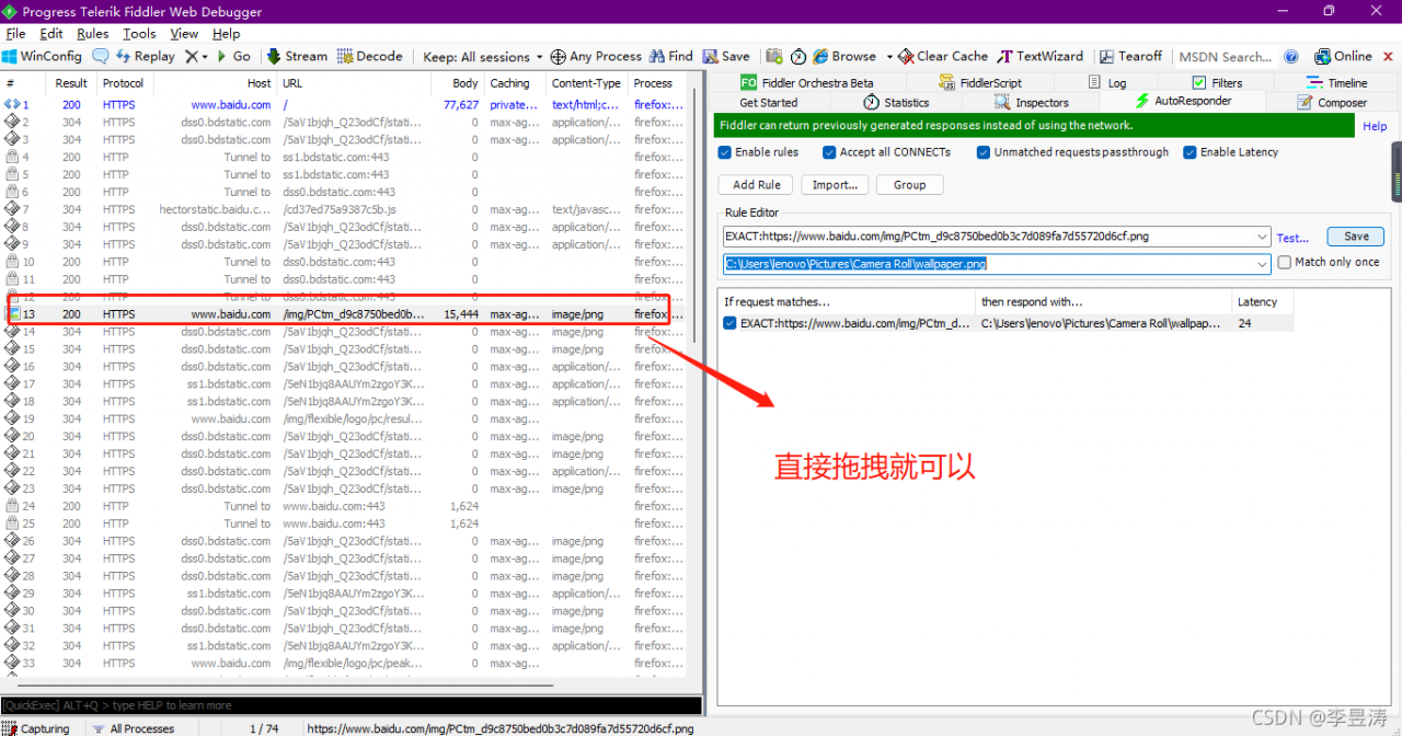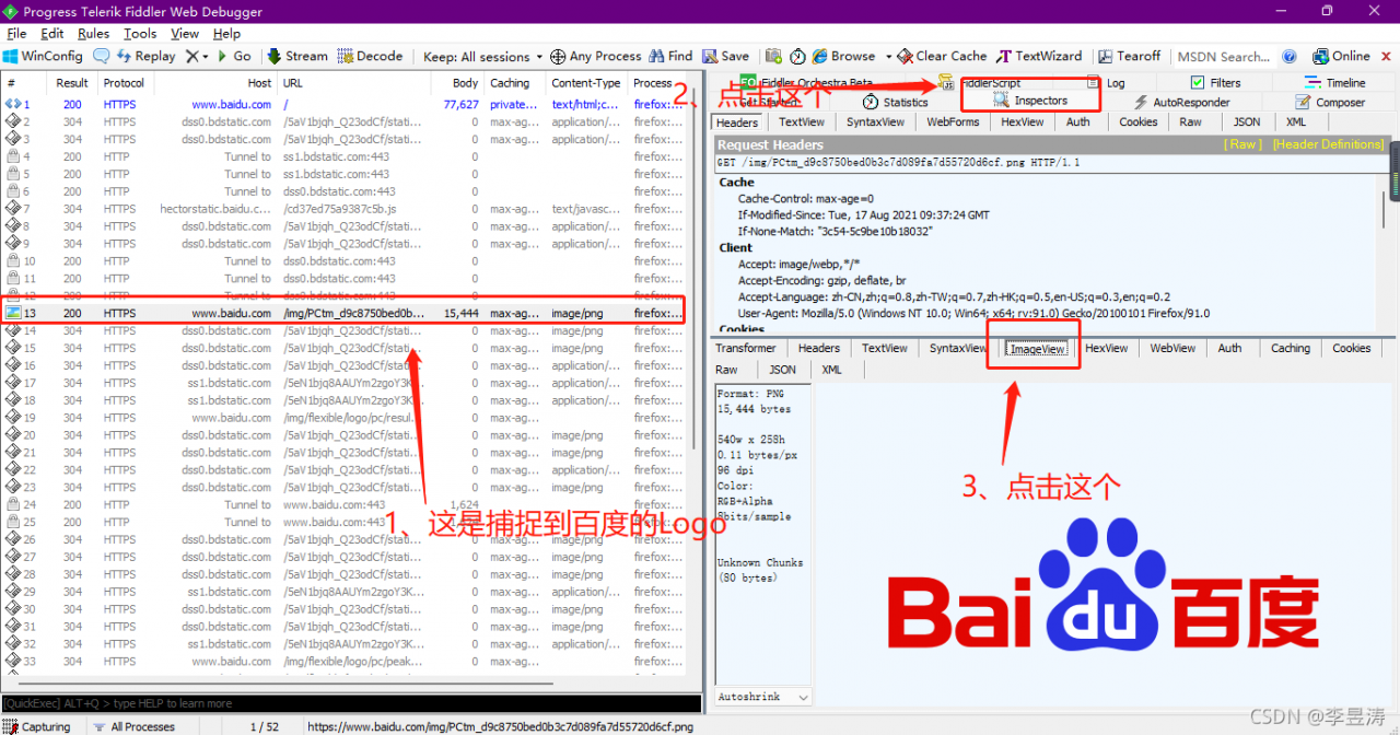 2、 需要先用Fiddler捕捉到百度的接口
