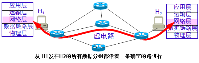 虚电路交换过程,分三个阶段,1:建立虚电路 2:传输数据 3:拆除虚电路