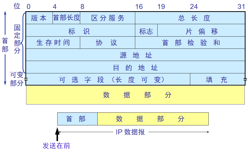 IP协议属于数据报分组交换的数据交换方式,是一种无连接的服务.IP协议的主要功能就是在原地址和目标地址之间传送数据报.具体来说就是:寻址,数据报的封装,分段与重组.关于IP数据报的头部格式,这一篇博文讲的比较详细,http://www.xuebuyuan.com/2038843.html ,下面是一张IP数据报报头格式的简图: