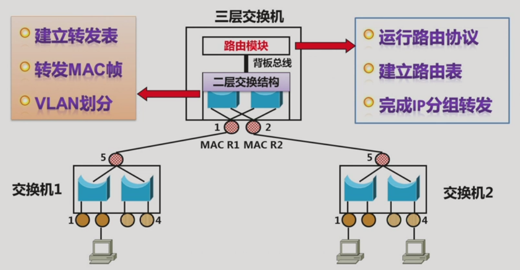 上图是一个华为的三层交换机.三层交换机的工作原理如下图: