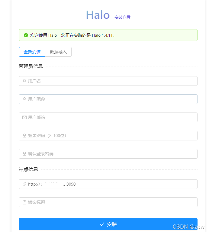 docker run --rm -it -d --name halo -p 8090:8090 -v ~/.halo:/root/.halo ruibaby/halo3,初始化配置,访问:http://x.x.x.x:8090