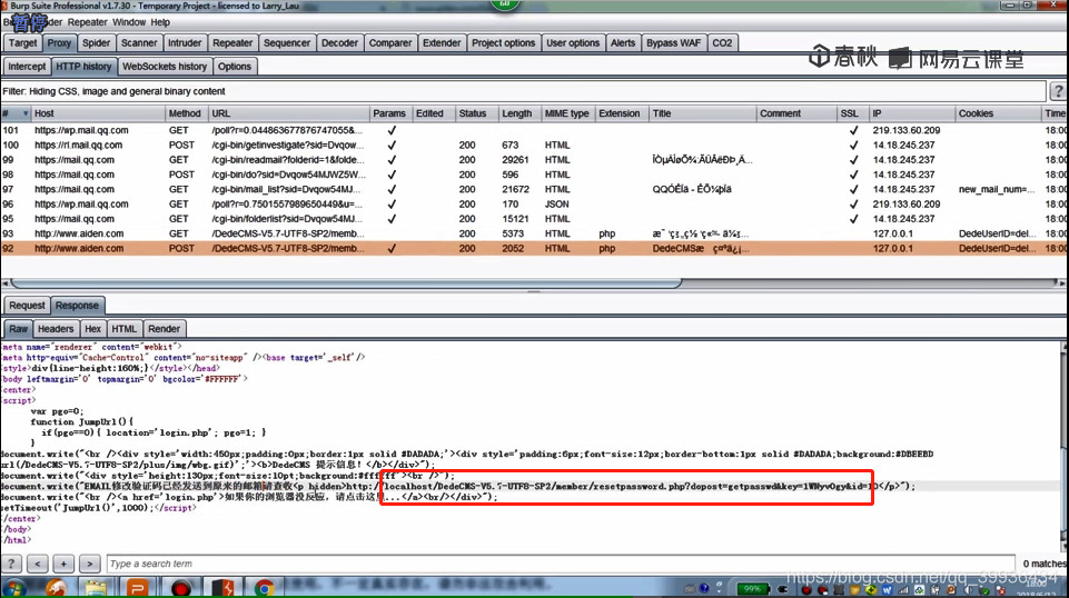 (一)点击找回密码,会跳到“修改密码链接已经发送到你手机/邮箱”的页面,用burpsite抓取这个页面可能会有修改密码的链接以标签hidden形式隐藏。