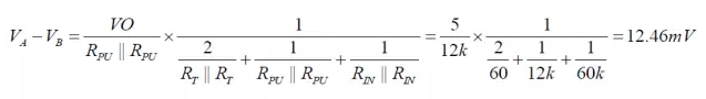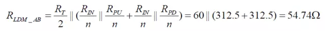 由于RSM485PCHT的门限电平为-200mV~+200mV,一般留有100mV或200mV的电压裕量,本例留有100mV的电压裕量,根据前面所推导的差分电压公式,可以得到下面计算公式: