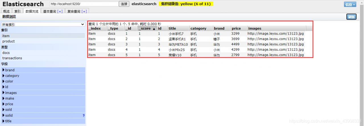 list.add(new Item(5L, "荣耀V10", "手机", "华为", 2799.00, "http://image.leyou.com/13123.jpg"));