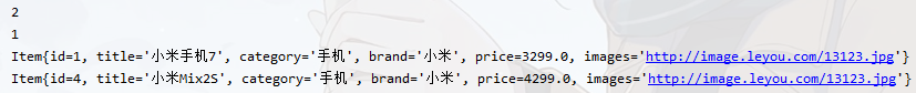 list.add(new Item(4L, "小米Mix2S", "手机", "小米", 4299.00, "http://image.leyou.com/13123.jpg"));