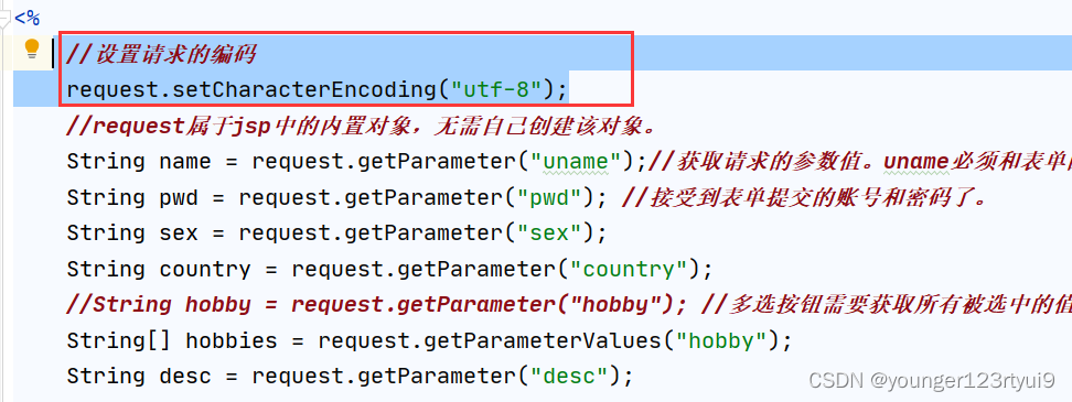 //String hobby = request.getParameter("hobby"); //多选按钮需要获取所有被选中的值。