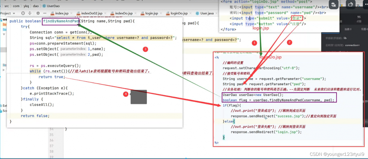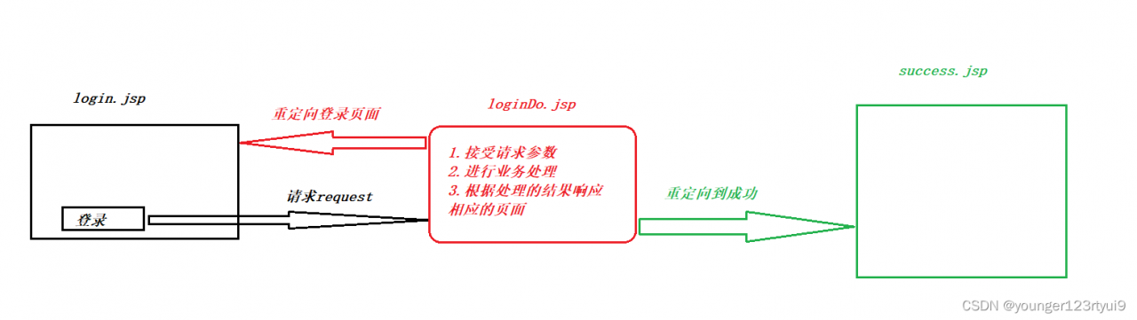 loginDo.jsp---接受请求的参数并进行相应的业务处理。跳转到相应的页面