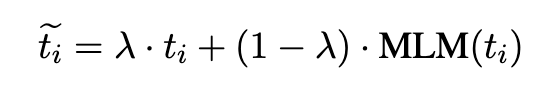 本文借鉴了上述方法,将MLM输出的概率分布和one-hot进行加权和,公式如下:
