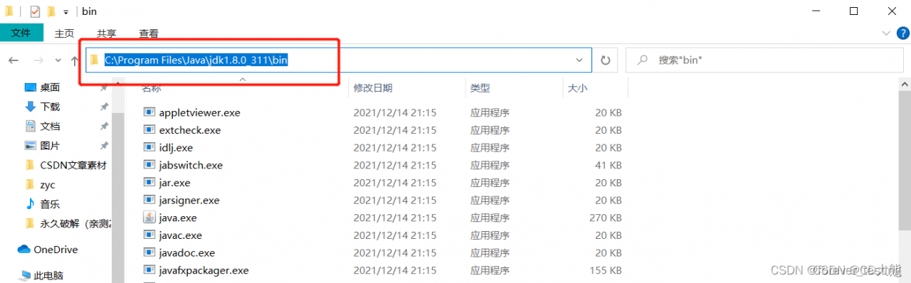 1.打开jdk的安装目录,进入bin目录,复制此路径