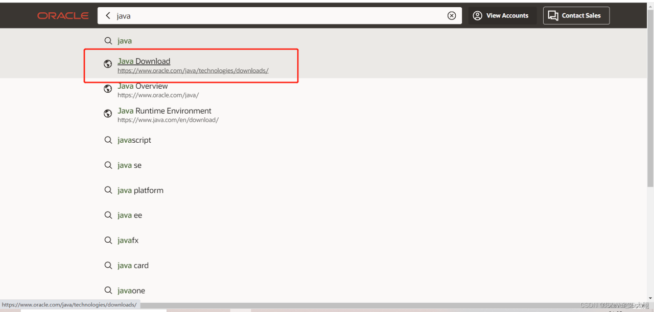 2.点击搜索按钮 ,输入Java,点击java download,跳转至Java下载页面