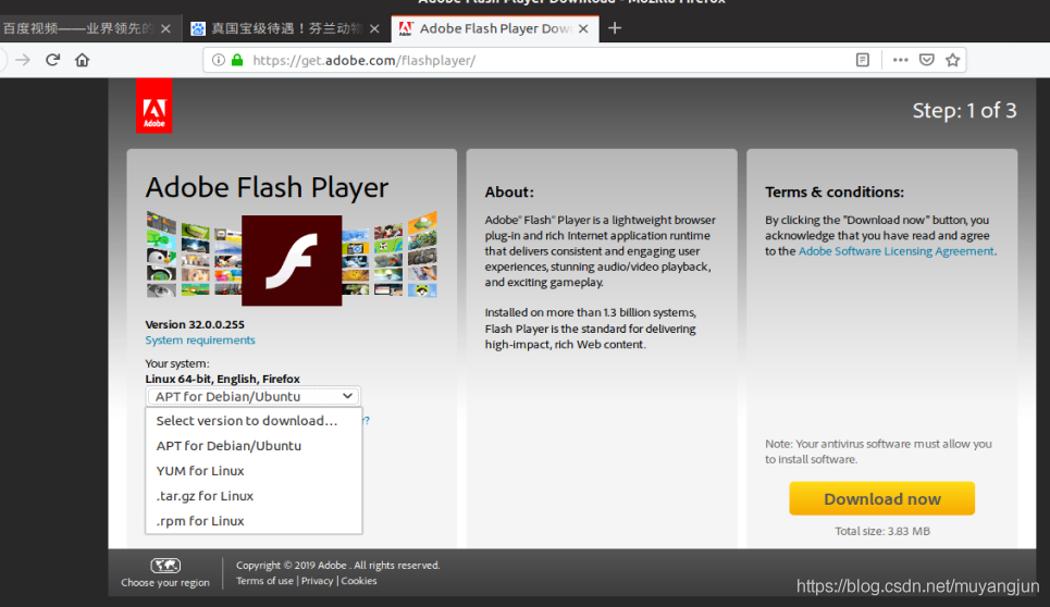 2.选择相应版本flash组件,Ubuntu建议选用apt