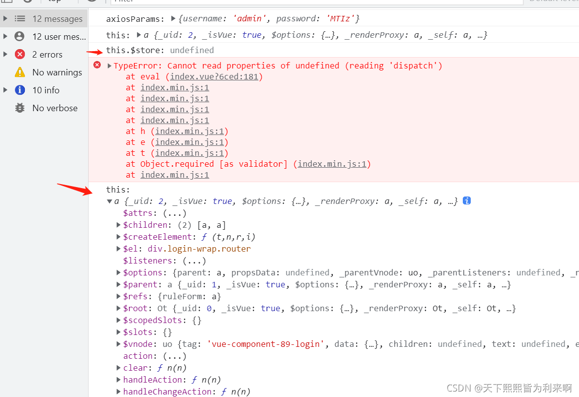 vue.min.js:6 TypeError: Cannot read properties of undefined (reading 'dispatch')