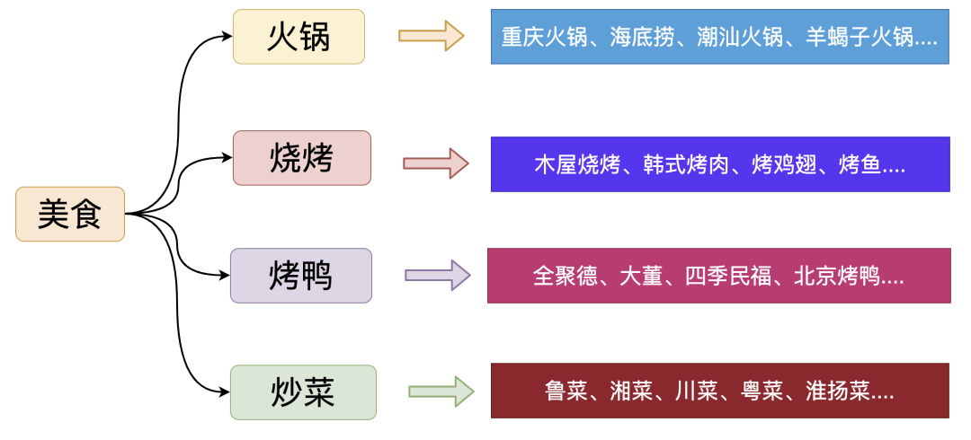 就如同我们提到美食就想到:火锅、烧烤、烤鸭、炒菜等等,是一个从点到面的过程,这种逆向过程在搜索引擎中非常重要。