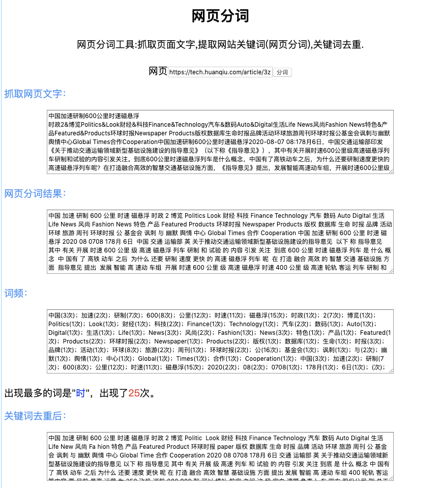 我们用在线网页分词工具和真实网页来模拟下这个过程: