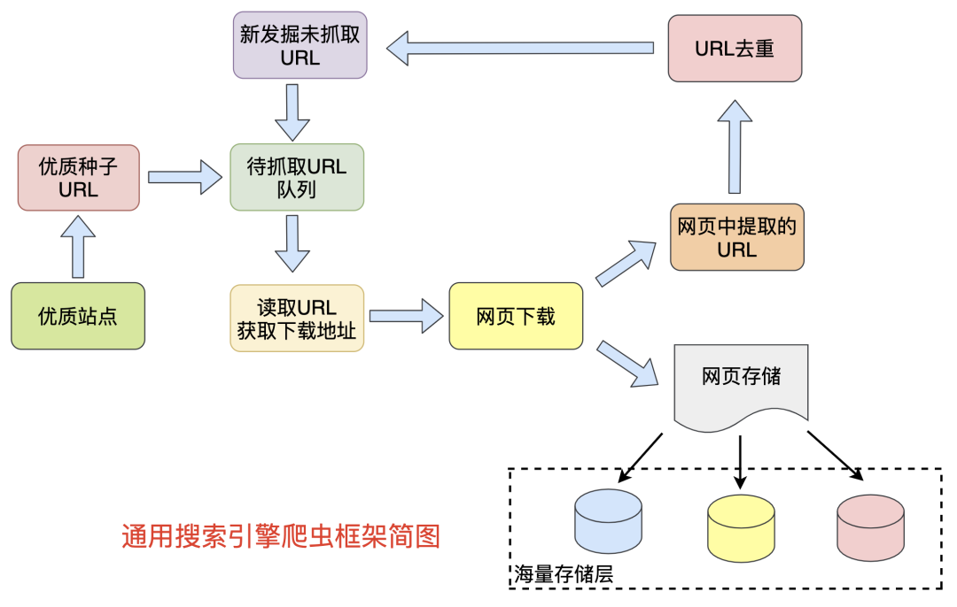 网络爬虫模块是通用搜索引擎非常的基础组件,一般都会采用分布式爬虫来实现,我们来看看这个搬运工是如何实现海量网页发掘的: