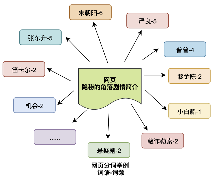 我们以一篇《隐秘的角落》剧情简介的页面为例,模拟分词情况,大致如下(本分词结果纯属脑补,以实际为准):