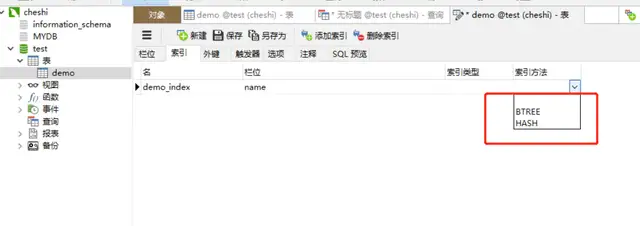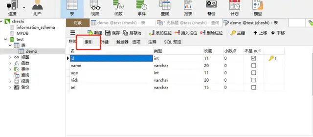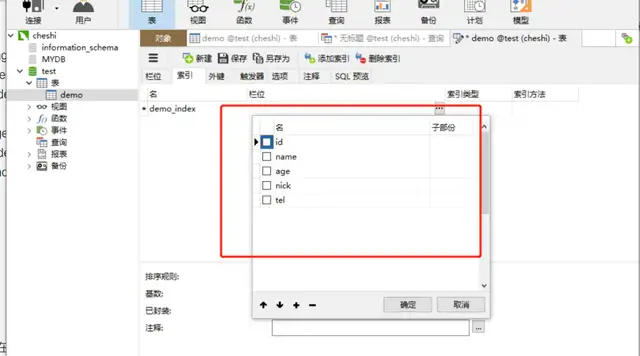 navicat直接创建索引