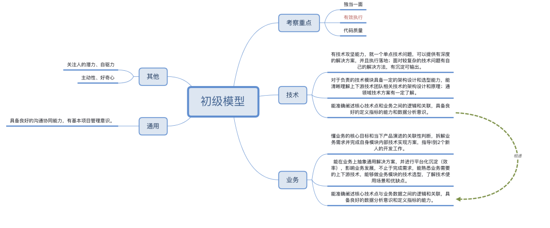 上周有一位读者朋友联系我,说他有阿里的技术人才能力模型,但是不能完全理解,想问问能不能解读一下,我看了一下内容确实很棒,于是我决定来解读一下,这个模型分为初级、中级和高级,先来聊下「初级模型」。