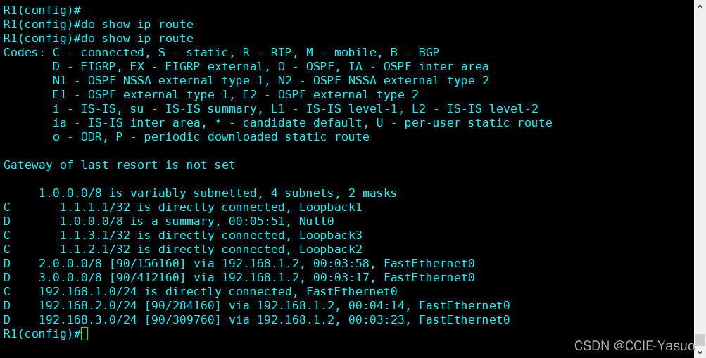 我们这个时候因为(自动汇总的原因)所以原本只有三条的路由变成了一条