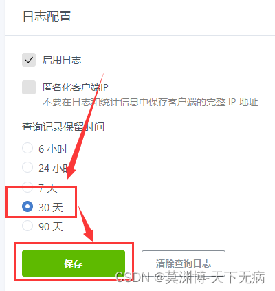 六、配置日志保留时间,这里不需要保留那么长的时间